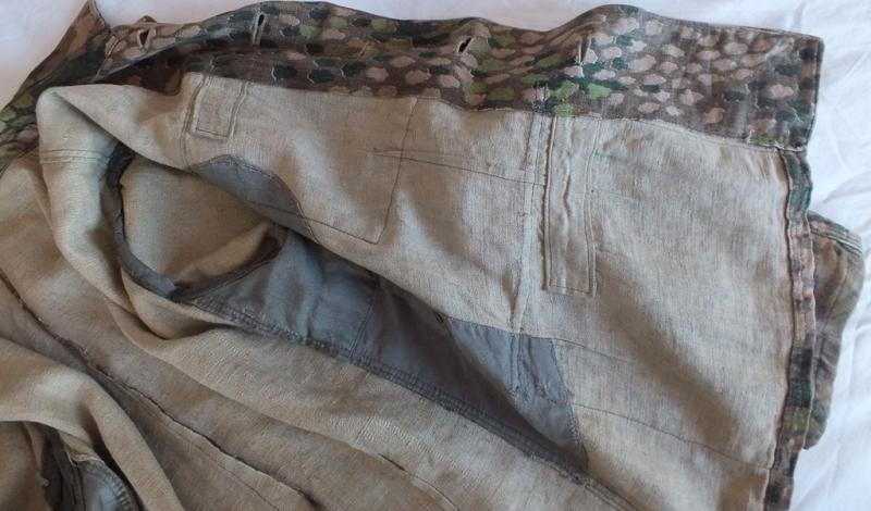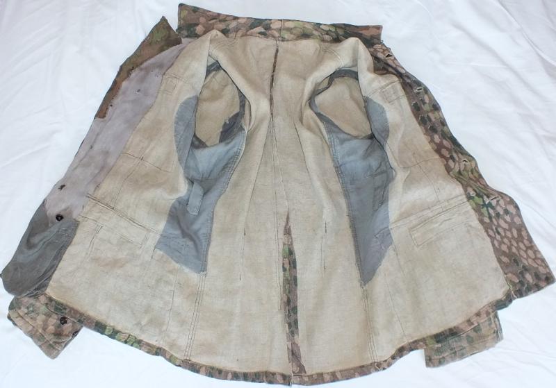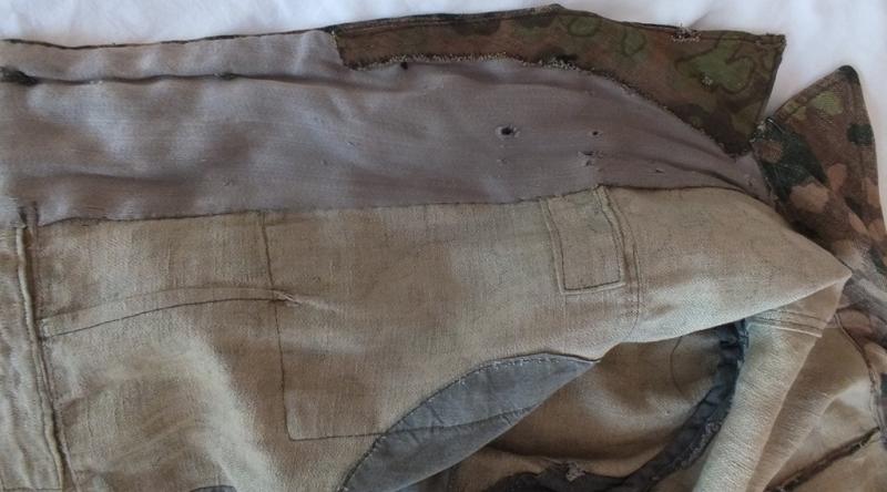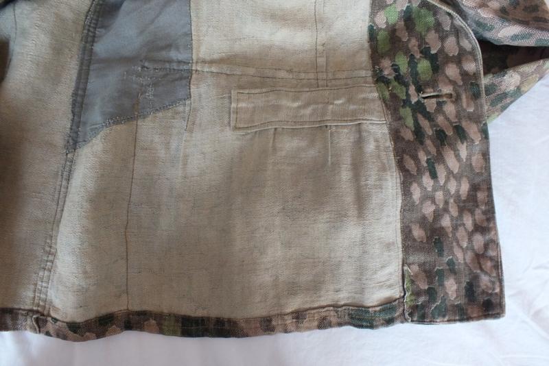 grey cotton liner material typical Betr.Ra type, tunic has no visible markings, lower pockets replaced, one lapel refabricated with an Oakleaf section and inner opener is in a grey silk like material.
