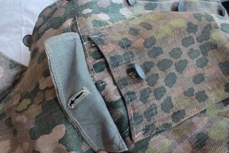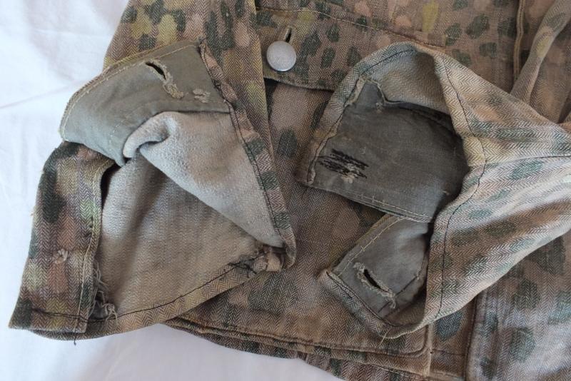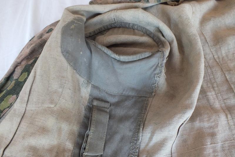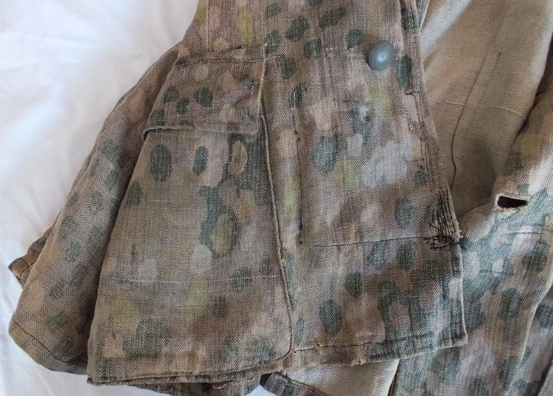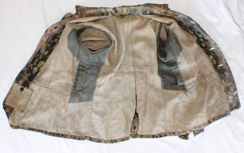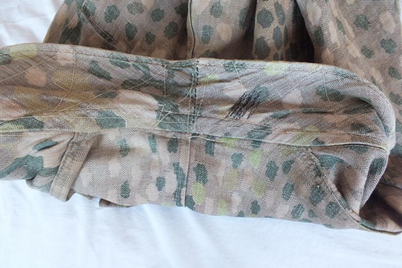 Betr.Ra production, marking now very faint, colours are a little subdued throughout, interestingly the right side breast pocket has retained stronger colours as it has been printed on the reverse side of the HBT, liner is in the typical grey cotton, some small repairs to lower front and bandage pocket cuffs have been slightly tuned up, been there piece.