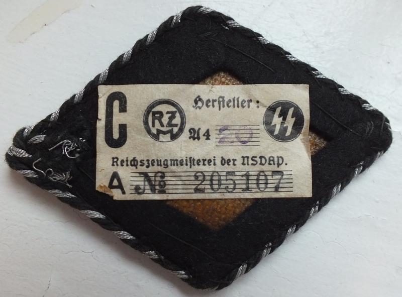SD-HAUPTAMT NCO sleeve diamond, superb condition no damage or oxidation, complete with paper RZM/SS paper tag with manufacturer '20' stamp.
