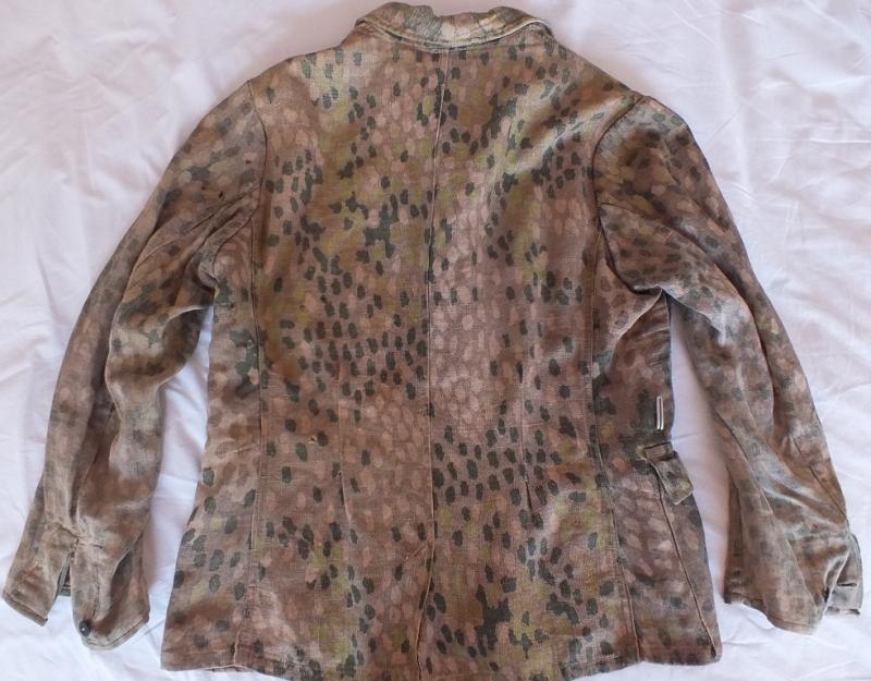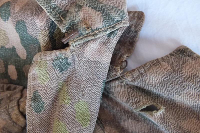 Betr.Ra production, marking now very faint, colours are a little subdued throughout, interestingly the right side breast pocket has retained stronger colours as it has been printed on the reverse side of the HBT, liner is in the typical grey cotton, some small repairs to lower front and bandage pocket cuffs have been slightly tuned up, been there piece.
